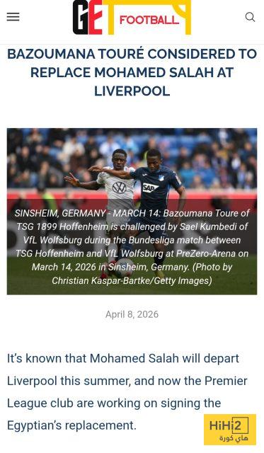 كشفت تقارير صحفية ألمانية أن نادي ليفربول يراقب الجناح الإيفواري الشاب بازومانا توريه، لاعب هوفنهايم، كخيار محتمل لتعويض رحيل محمد صلاح.