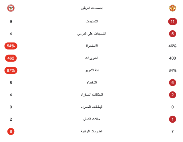 ورفع اليونايتد بهذا الفوز رصيده إلى 61 نقطة في المركز الثالث بجدول ترتيب البريميرليغ، بينما تجمد رصيد برينتفورد عند 48 نقطة في المركز التاسع.