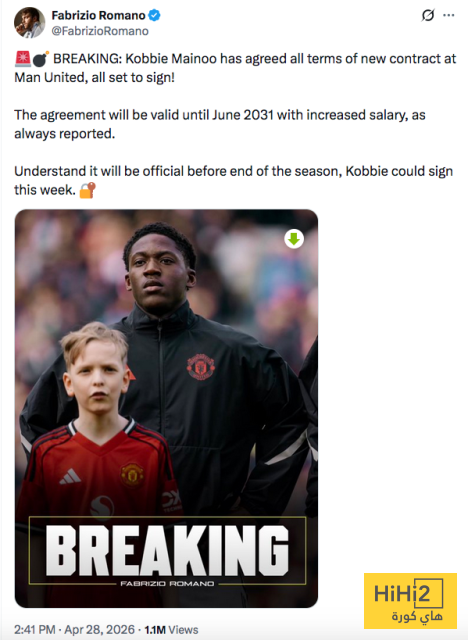 حسب الصحفي المتخصص في الانتقالات، فابريزيو رومانو، توصل نادي مانشستر يونايتد إلى اتفاق مع اللاعب الشاب كوبي ماينو بشأن تجديد عقده مع الفريق.