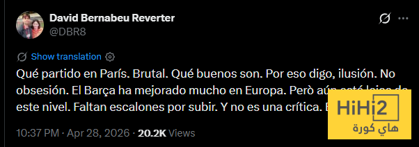 ” يا لها من مباراة في باريس ! ، كانت شرسة ، انهم رائعون للغاية ، لهذا السبب أقول أنها اثارة ، وليست هوسا ، لقد تحسن برشلونة كثيرا في اوروبا ، لكنه لا يزال بعيدا عن هذا المستوى ، لا تزال هناك خطوات يجب قطعها ، وهذا ليس انتقادا بل أمر طبيعي ” .