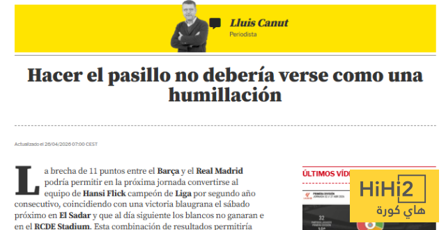 قد يتيح الفارق البالغ 11 نقطة بين برشلونة وريال مدريد لفريق هانز فليك التتويج بلقب الدوري الإسباني للمرة الثانية على التوالي في الجولة القادمة . ويتطلب ذلك فوز البارسا على ملعب إل سادار يوم السبت المقبل وتعادل ريال مدريد على ملعب آر سي دي إي في اليوم التالي .