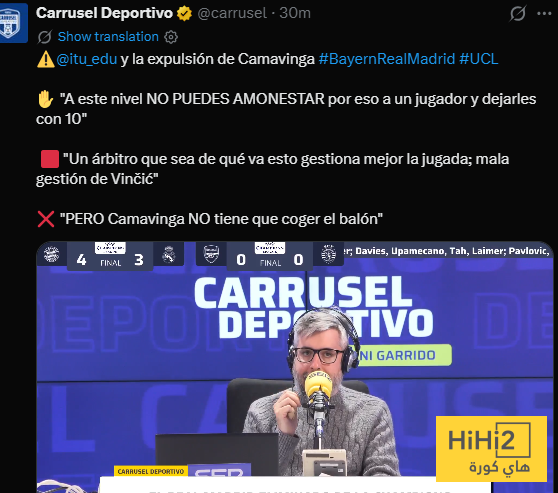 ايتورالدي غونزاليس عبر اذاعة كادينا سير : ” لا يمكن انذار لاعب بسبب ذلك وترك الفريق بعشرة لاعبين .. الحكم الذي يدرك خطورة الموقف يدير اللعب بشكل افضل ، سوء ادارة من فينتيتش .. ولكن كامافينغا لم يكن ينبغي له ان يلمس الكرة “