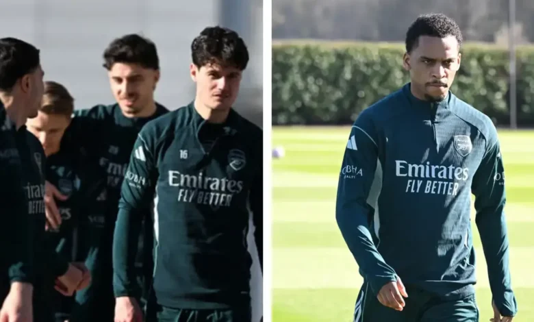 شوهد كل من مارتن أوديجارد وجوريان تيمبر يتدربان مع الفريق الأول لأرسنال قبل نهائي كأس كاراباو ضد مانشستر سيتي.