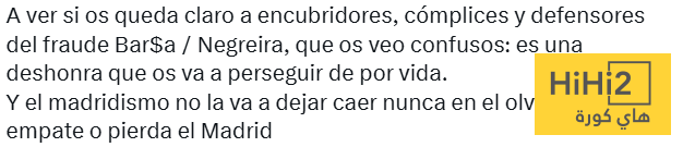 دعونا نرى إن كان هذا واضحا لكم ، يا من تسترتم على فضيحة برشلونةونيغريرا وتواطأتم فيها ودافعتم عنها ، لأني أرى ارتباككم واضحا ، هذا عار سيلاحقكم طوال حياتكم .