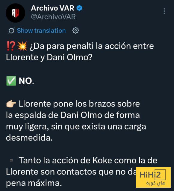 وفقًا لمنصة أرشيف الفار ، سقوط داني أولمو في منطقة جزاء أتلتيكو مدريد من جديد وللمرة الثانية لا يستحق الحصول على ركلة جزاء .