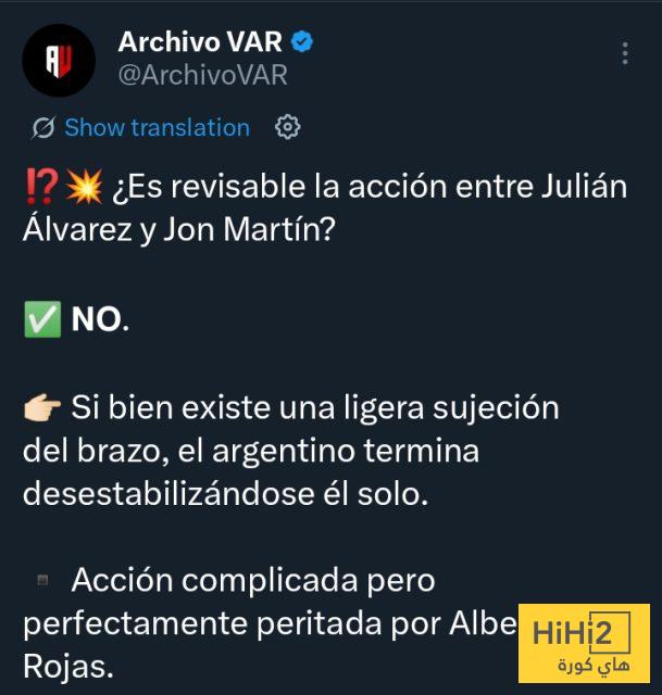 أكدت منصة أرشيف الفار ، أن اللقطة بين جوليان الفاريز وجون مارتين لم تستحق تدخل تقنية الـVAR لمراجعتها .