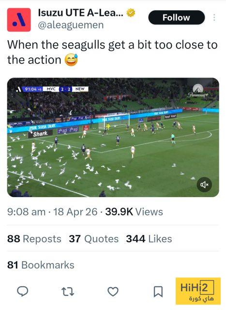 شهدت مباراة في الدوري الأسترالي بين ملبورن فيكتوري ونيوكاسل جيتس على ملعب AAMI بارك بمدينة ملبورن واقعة غير معتادة، بعدما اقتحم سرب من طيور النورس أرضية الملعب في الدقائق الأخيرة من اللقاء، ما تسبب في إرباك اللاعبين وتوقف اللعب بشكل مؤقت.